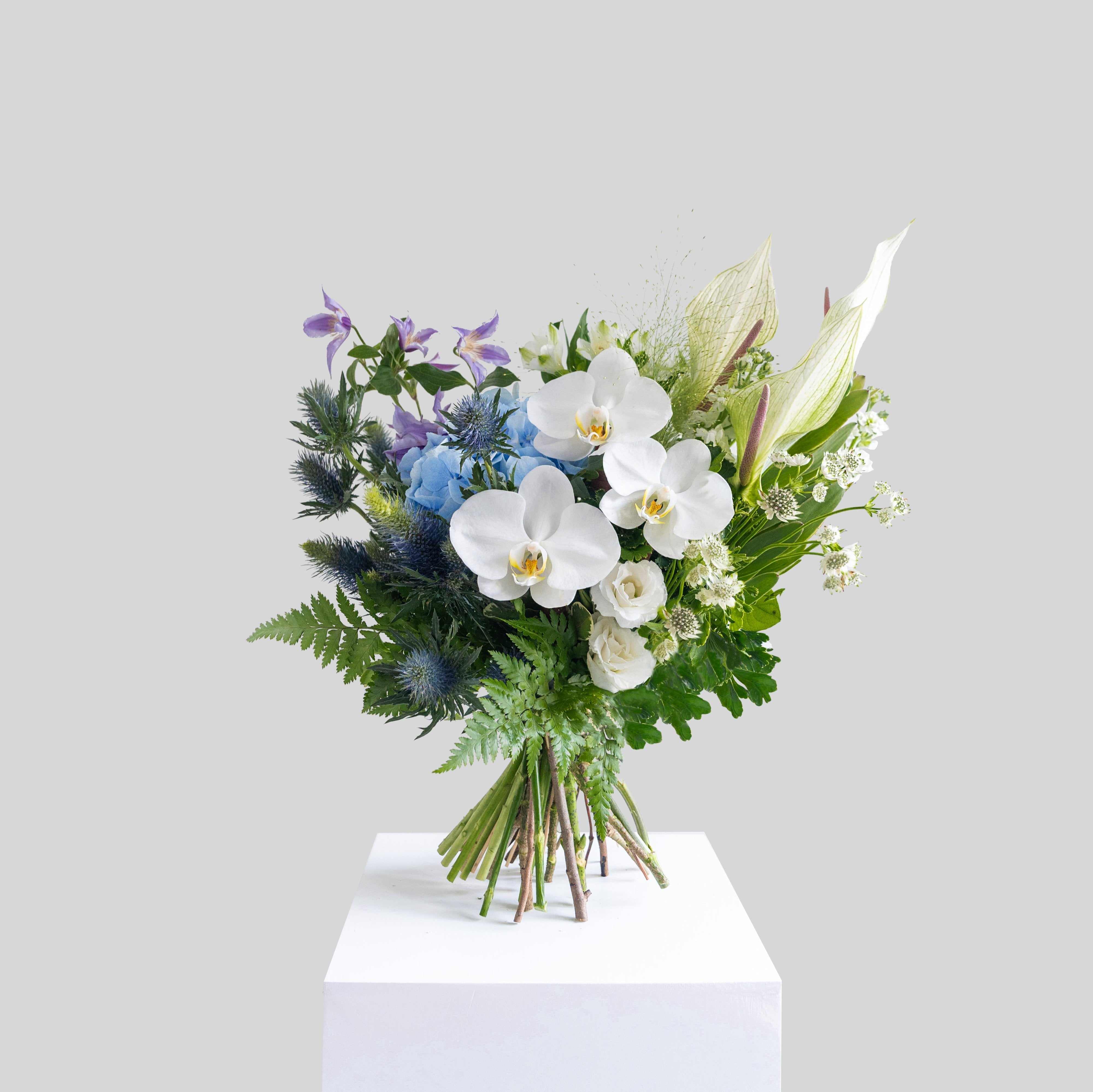 Main blooms: Hydrangea, Orchids, Anthurium, Leucadendron, Eryngium, Clematis