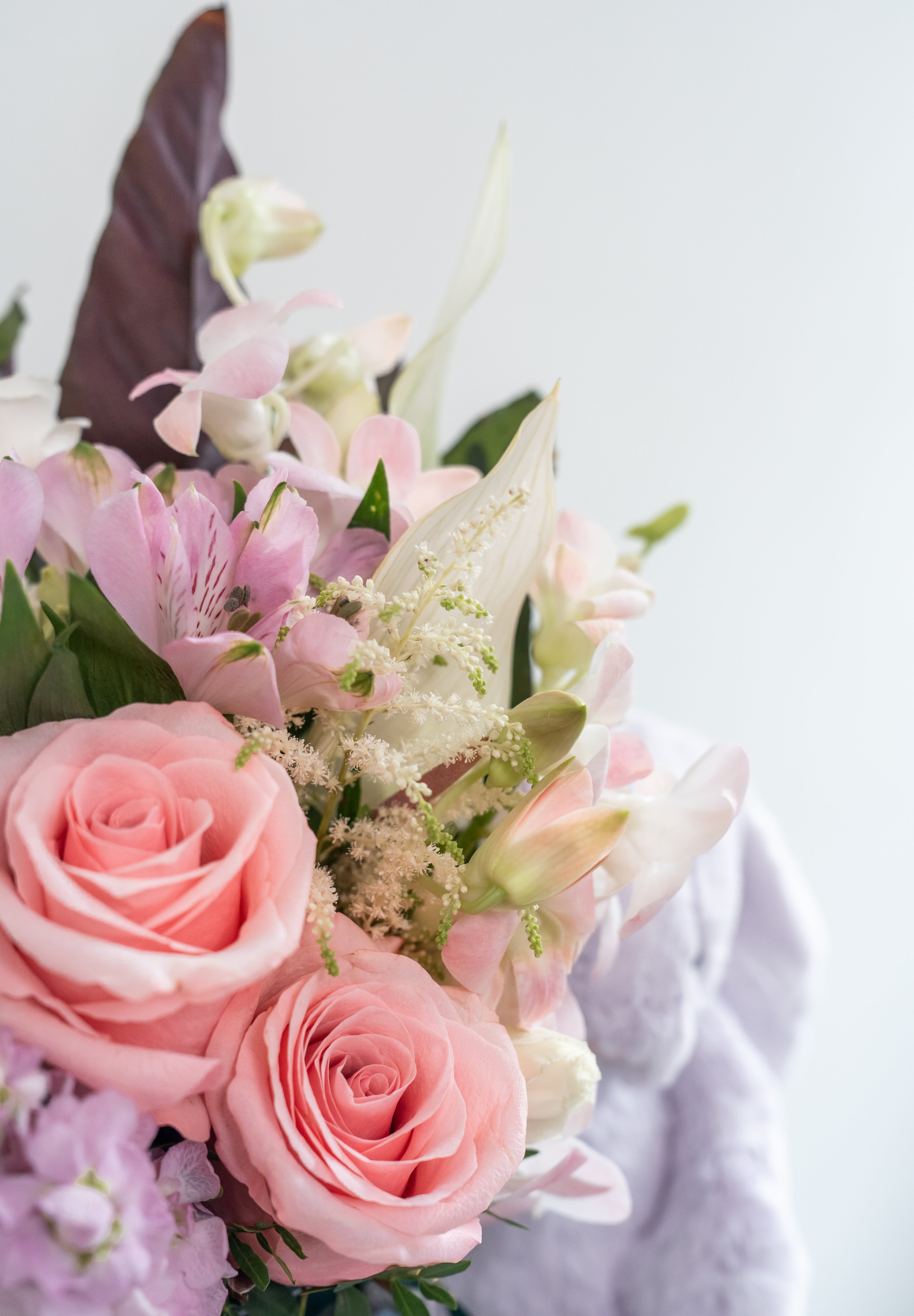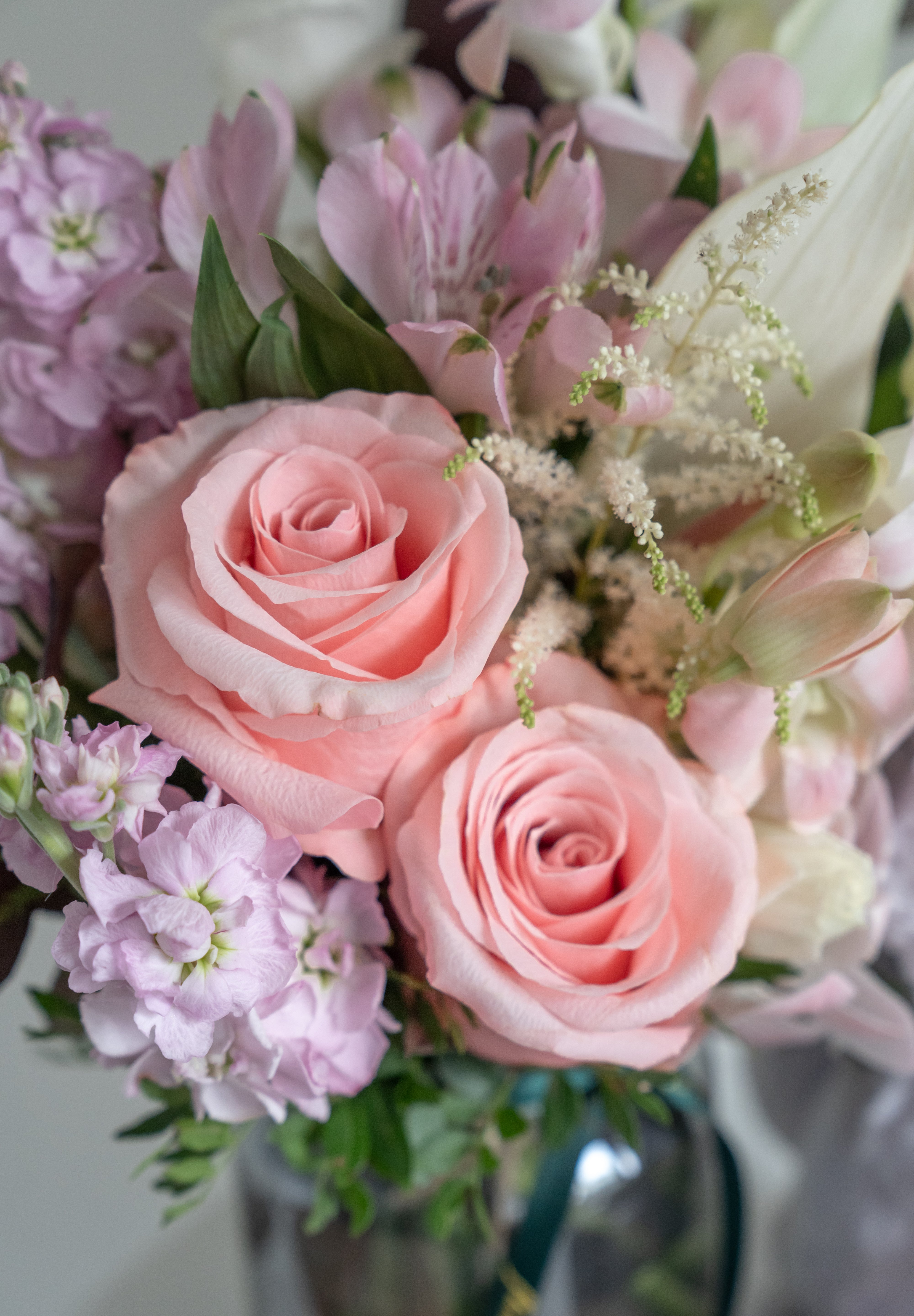 Main blooms: Ecuadorian roses, Anthurium, Astilbe, Thai Orchids
