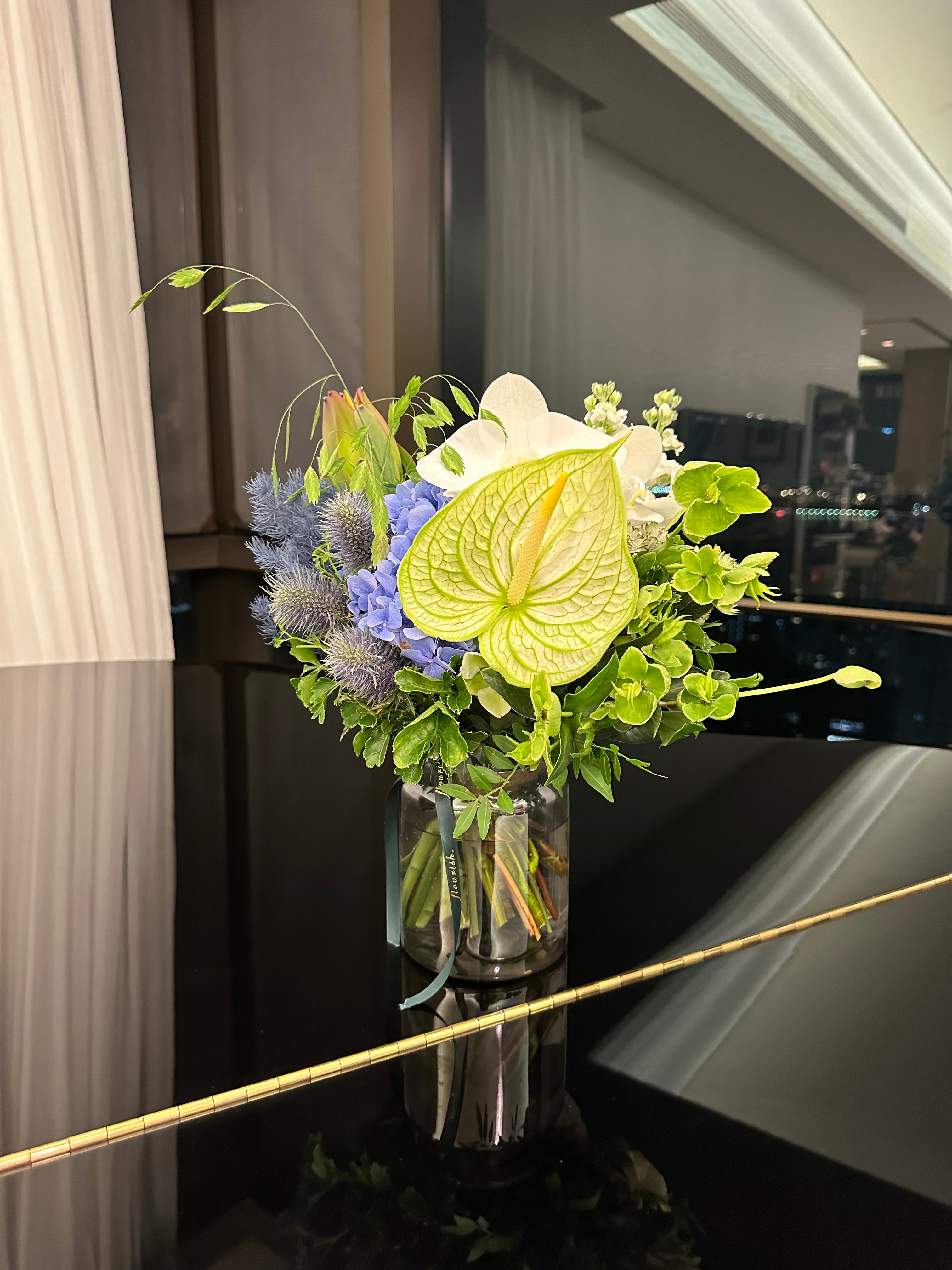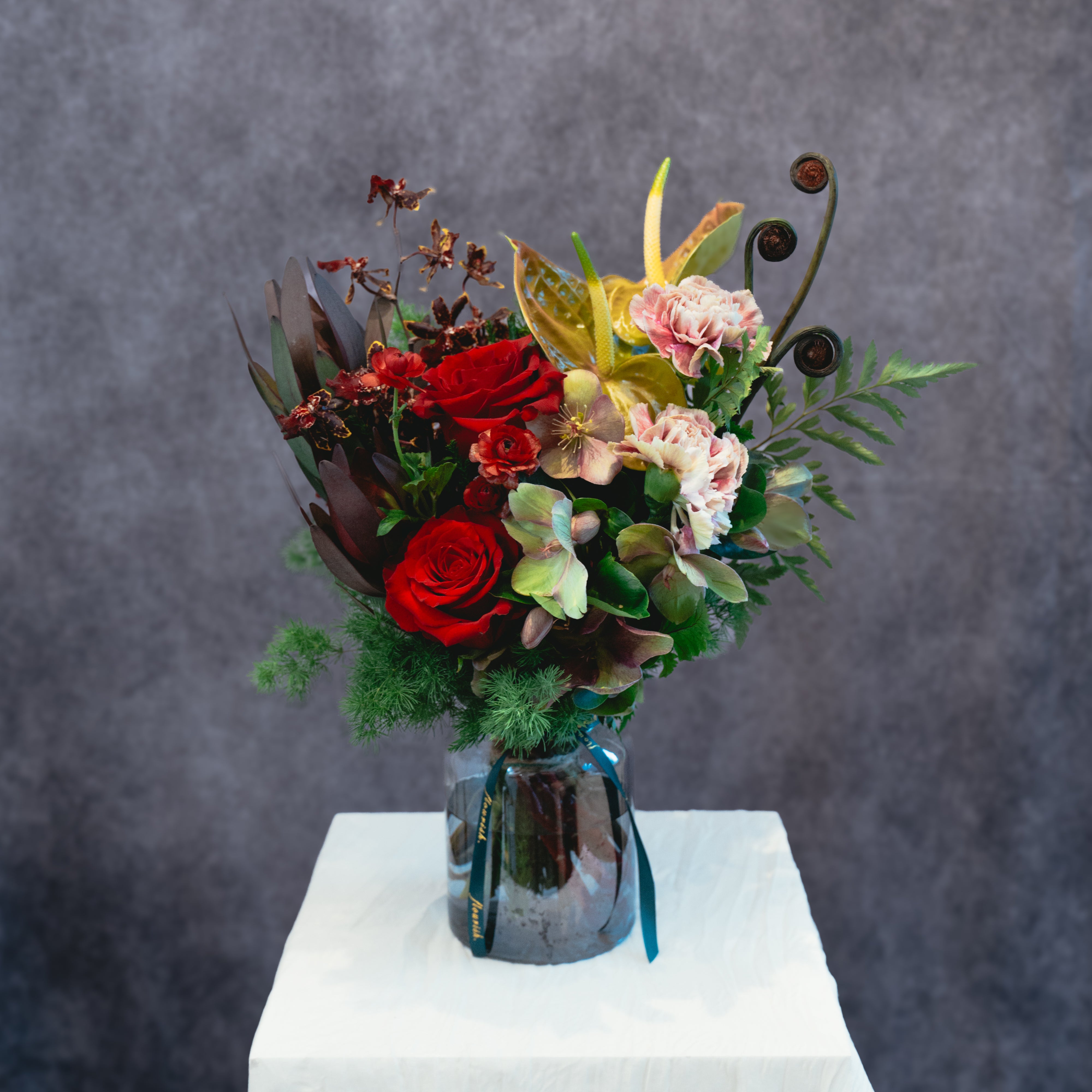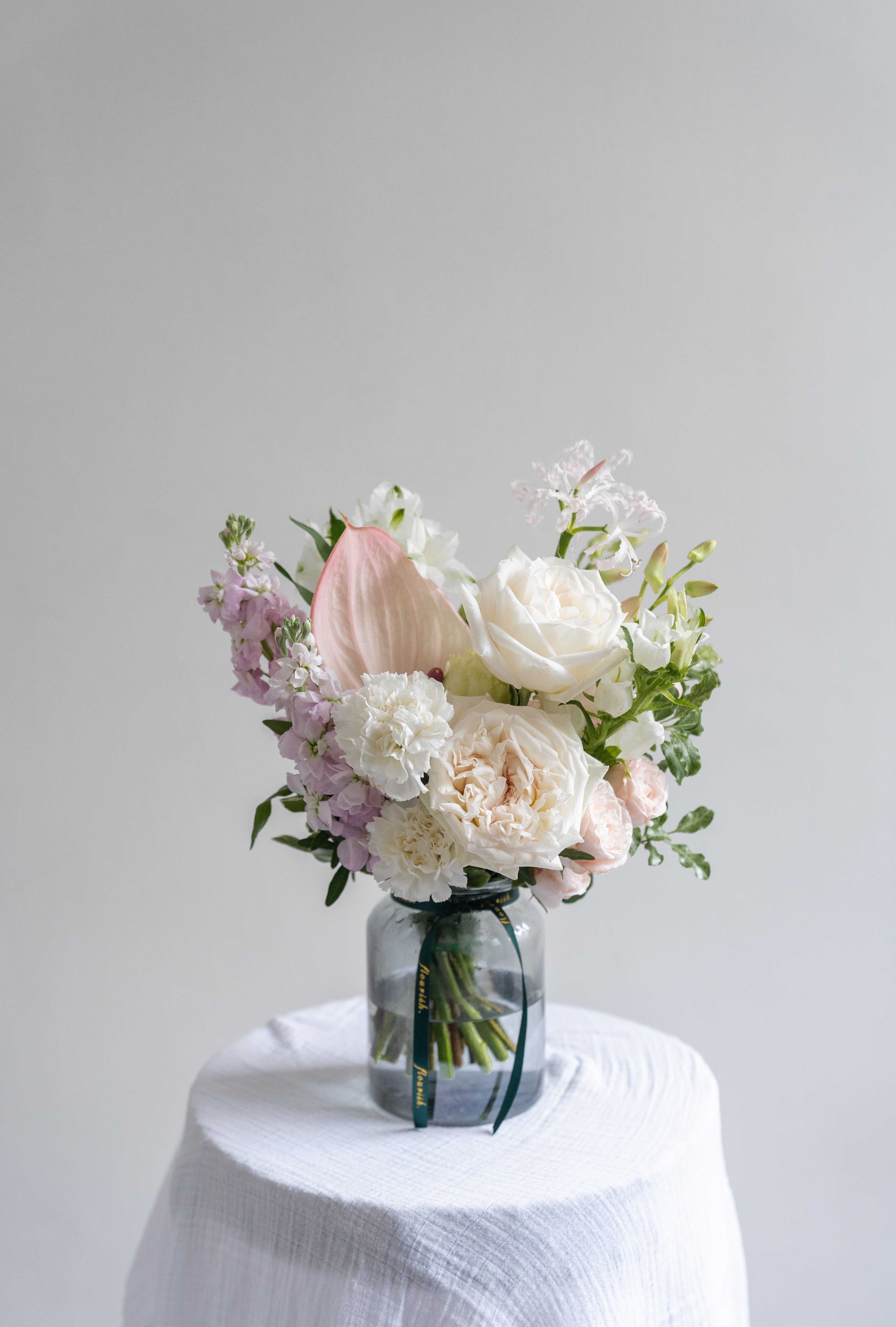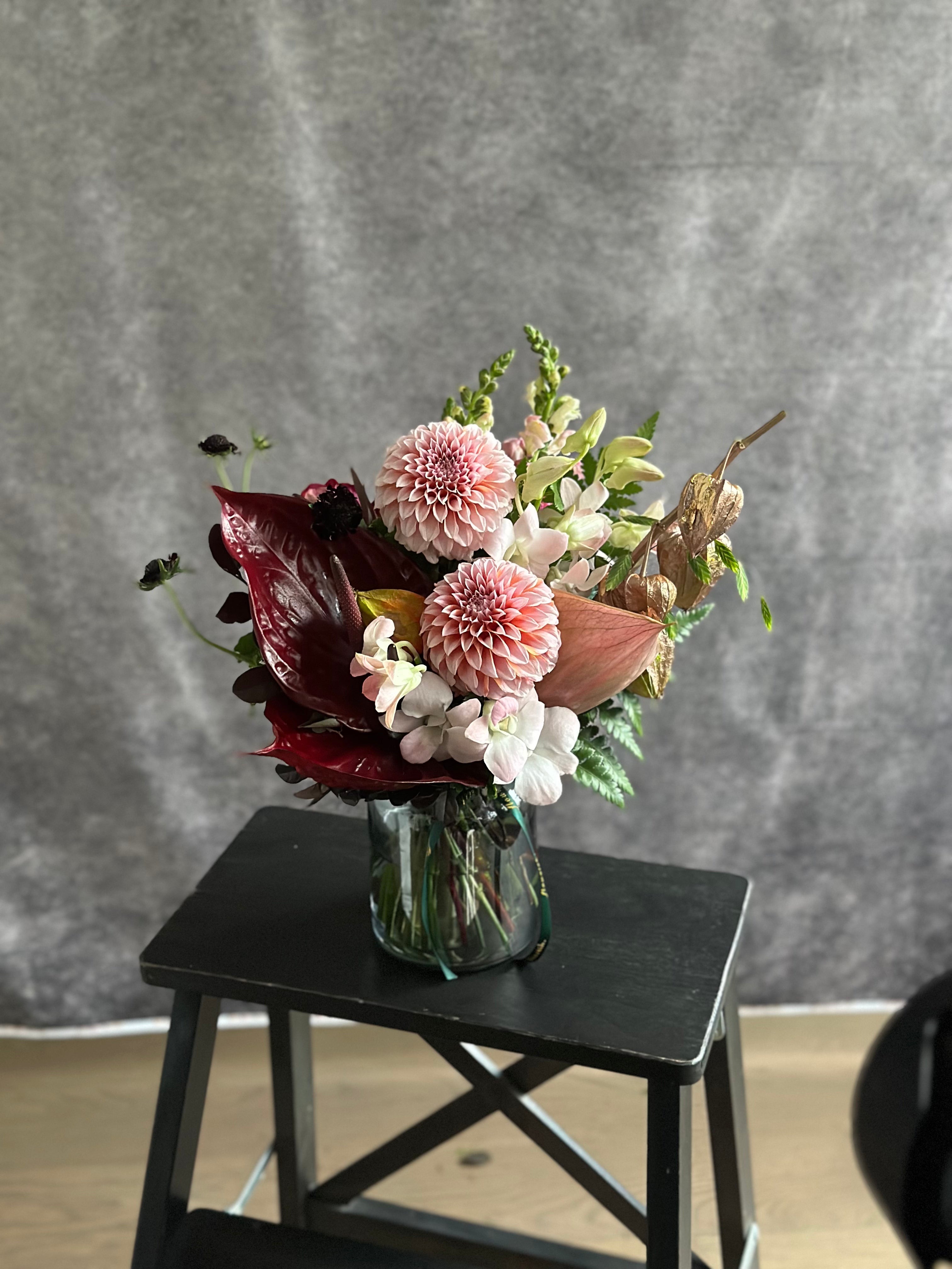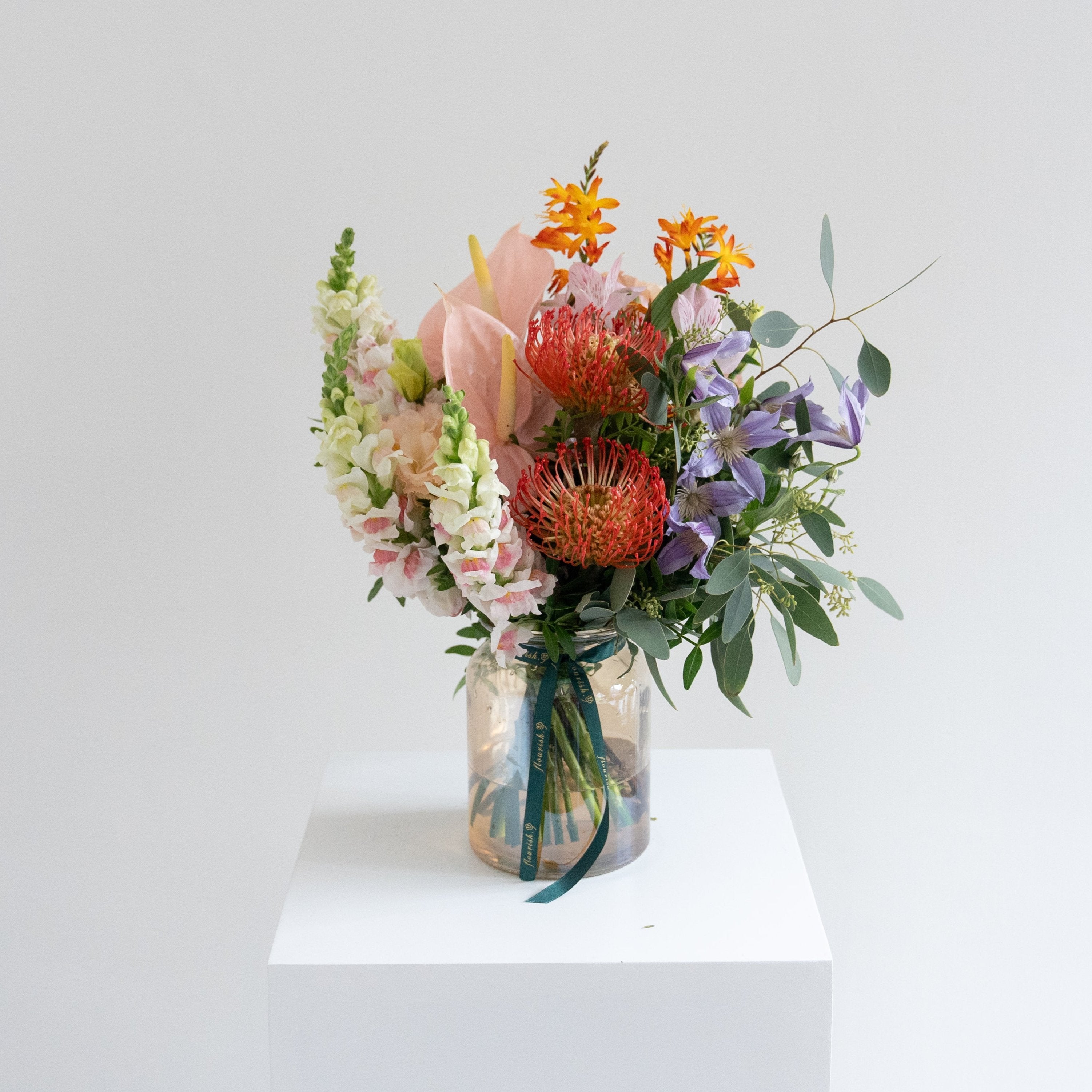 The arrangement is delivered with a vase in the first delivery. For subsequent deliveries, we provide an arranged bundle that you can simply replace in the vase. We use the freshest seasonal flowers and ensure that each delivery is unique and different from the previous one.